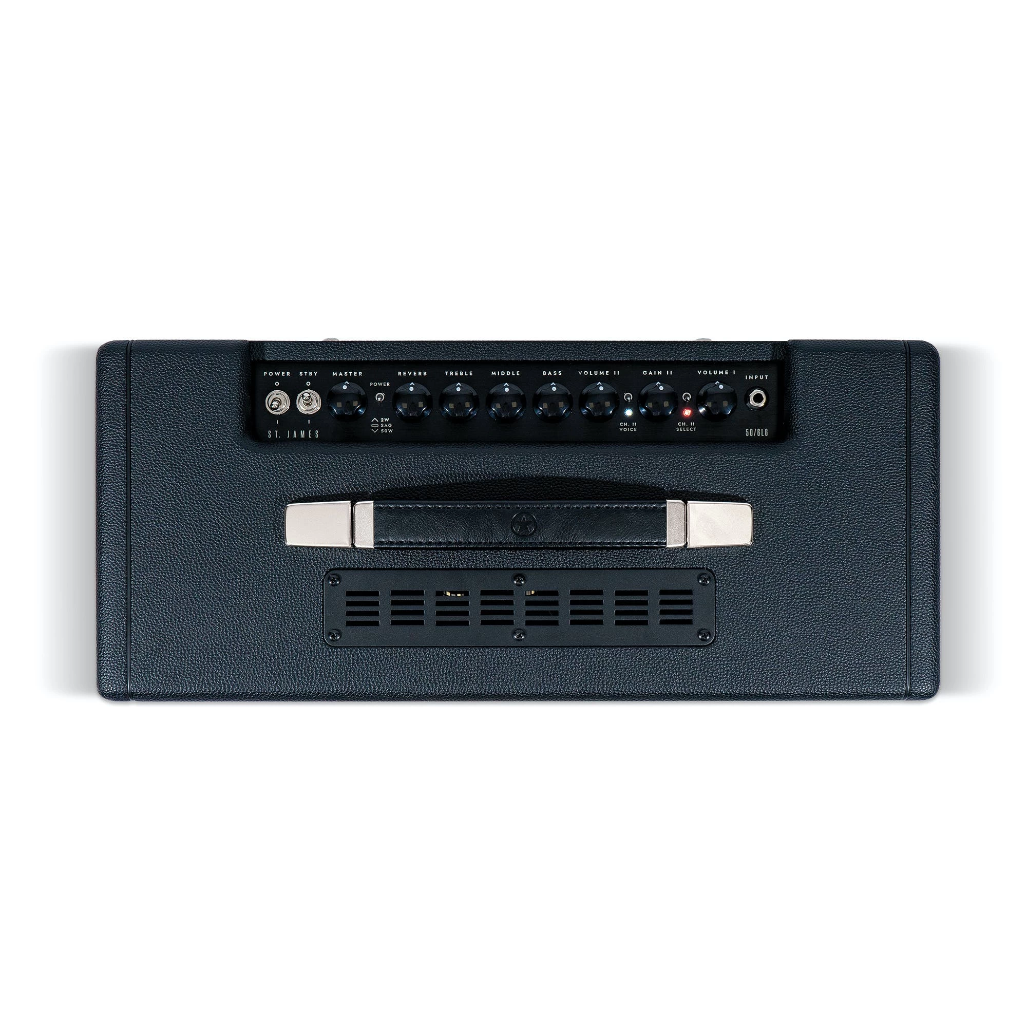 Based on Blackstar’s patented Dynamic Power Reduction design, the St. James allows you to chose from three power levels – 50 watts, 2 watts and Sag. This feature essentially lets you tailor the output of the amplifier for different situations. At full power, you can easily gig with the St. James with plenty of clean headroom, which also makes it a great pedal platform. At 2 watts, you can get the power amp working harder at much lower volumes, making the St. James practical for home use. The Sag setting generates more power supply ‘sag’ to accentuate the amp compression and the result is a softer feel and more vintage tone.