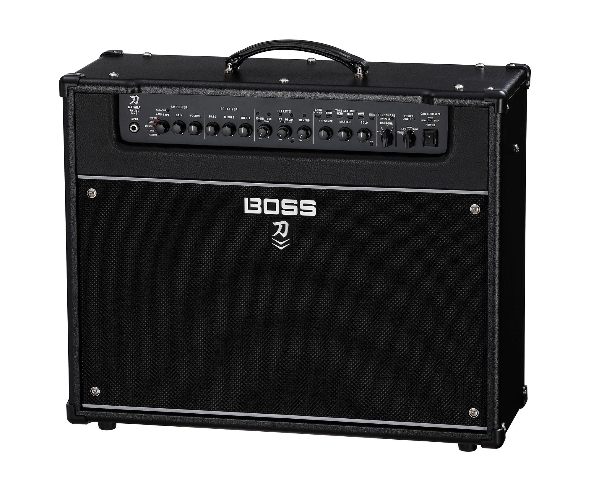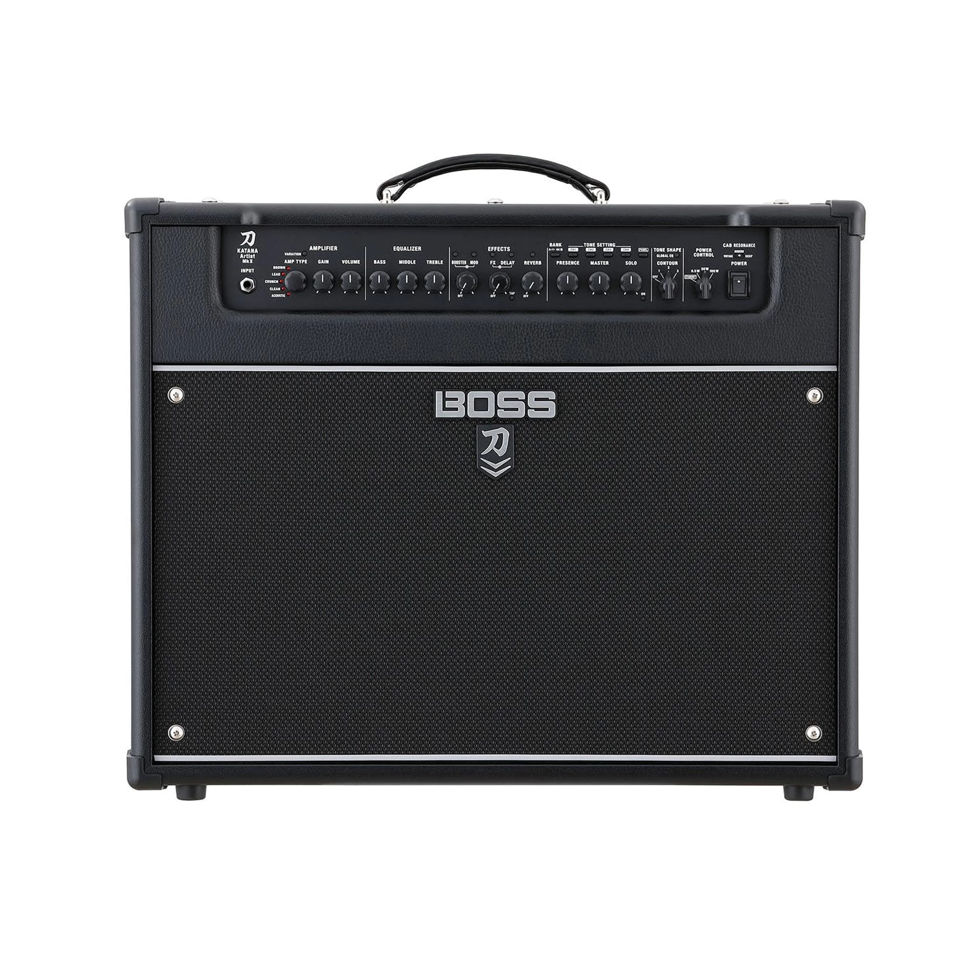 A three-way contour switch was incorporated to shape the amps base tone; three global EQ settings then let you meticulously alter your tone with a variety of styles and guitars. There’s even an integrated panel knob which benefits the foot-controllable, post amp solo boost. These features are exclusive to the Katana-Artist MKII.