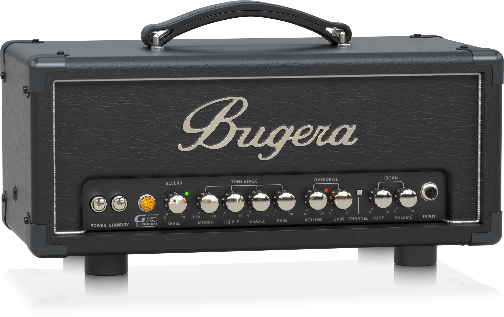 The Bugera G5 Infinium is an affordable 5 watt, all tube amplifier that packs a much bigger punch than its diminutive size would suggest! The G5 is loaded with Bugera’s revolutionary technology including MORPH EQ, which allows you to seamlessly change the tonal characteristics of the amp. So if you want a more “American” style clean channel, or a classic “British” overdrive, the G5 has you covered! The G5’s classic push-pull design provides sweetly-balanced harmonics and natural tube compression – resulting in a warm distortion and break-up.