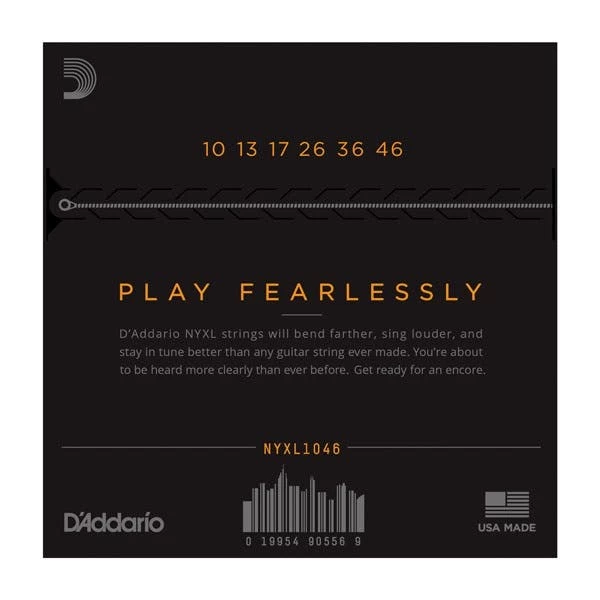 D’Addario NYXL guitar strings will bend farther, sing louder, and stay in tune better than any string you’ve played before. Envisioned, perfected, and manufactured by D’Addario in New York, this newly engineered, break-resistant, high-carbon steel core and plain steel alloy delivers a whole new level of freedom, confidence, and power. NYXL’s provide more strength and up to 131% greater tuning stability by utilizing a completely reinvented wire drawing process coupled with a revolutionary “fusion twist” process for the plain steels. The reformulated nickel plated string windings have greater magnetic properties resulting in higher output and enhanced mid-range frequency response for more presence and crunch.