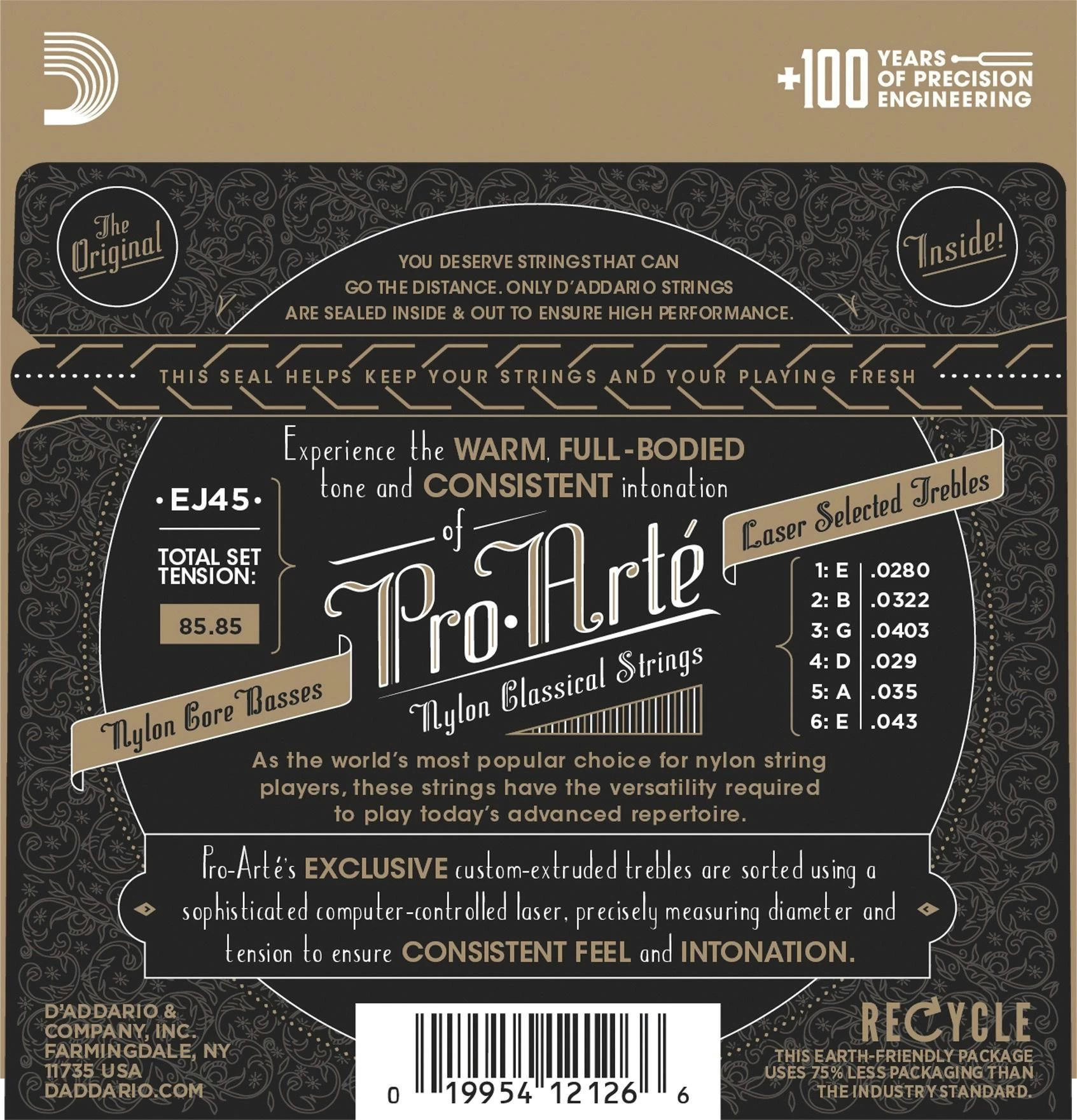 Pro-Arte basses are wound using silverplated copper on a multi-filament nylon core for consistent, warm-yet-projecting tone.