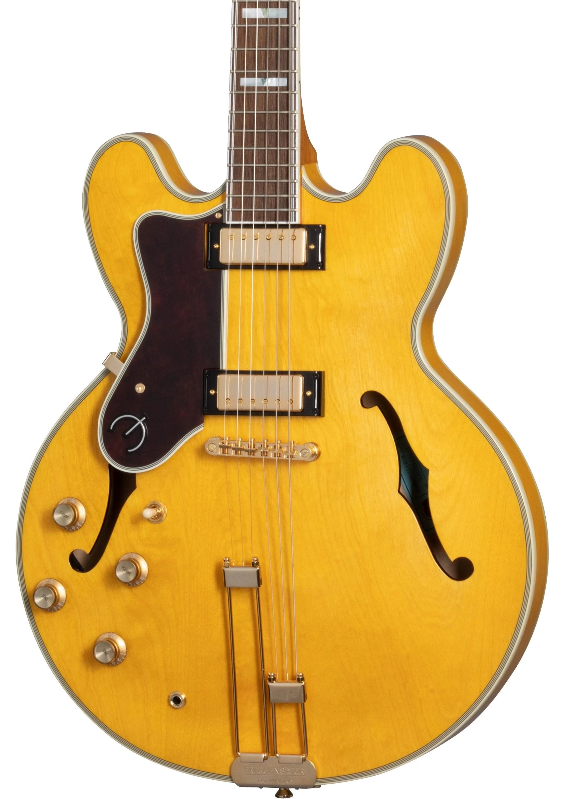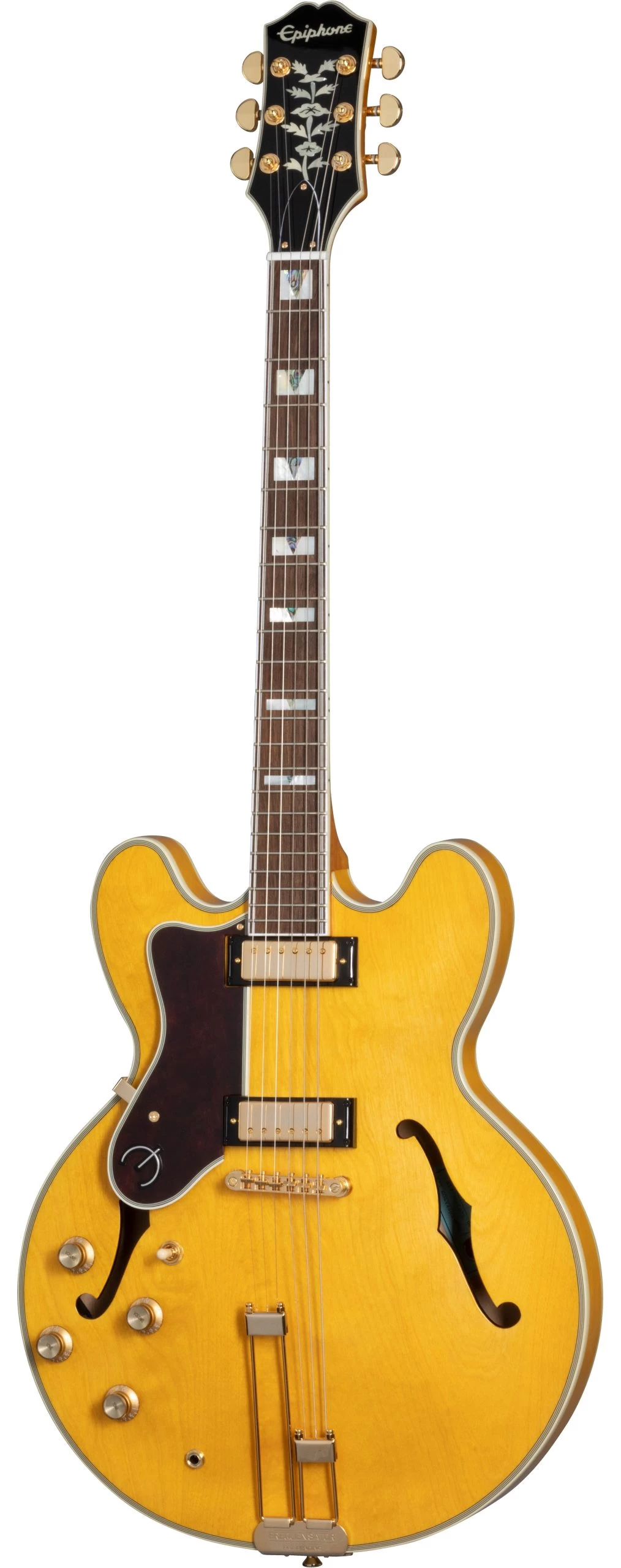 Epiphone ProBucker mini humbuckers deliver a wide dynamic tonal range that finds a voice in nearly any genre. Gold hardware, including a vintage-styled Frequensator Split Trapeze tailpiece, add to the simple and timeless aesthetic of this Epiphone icon!