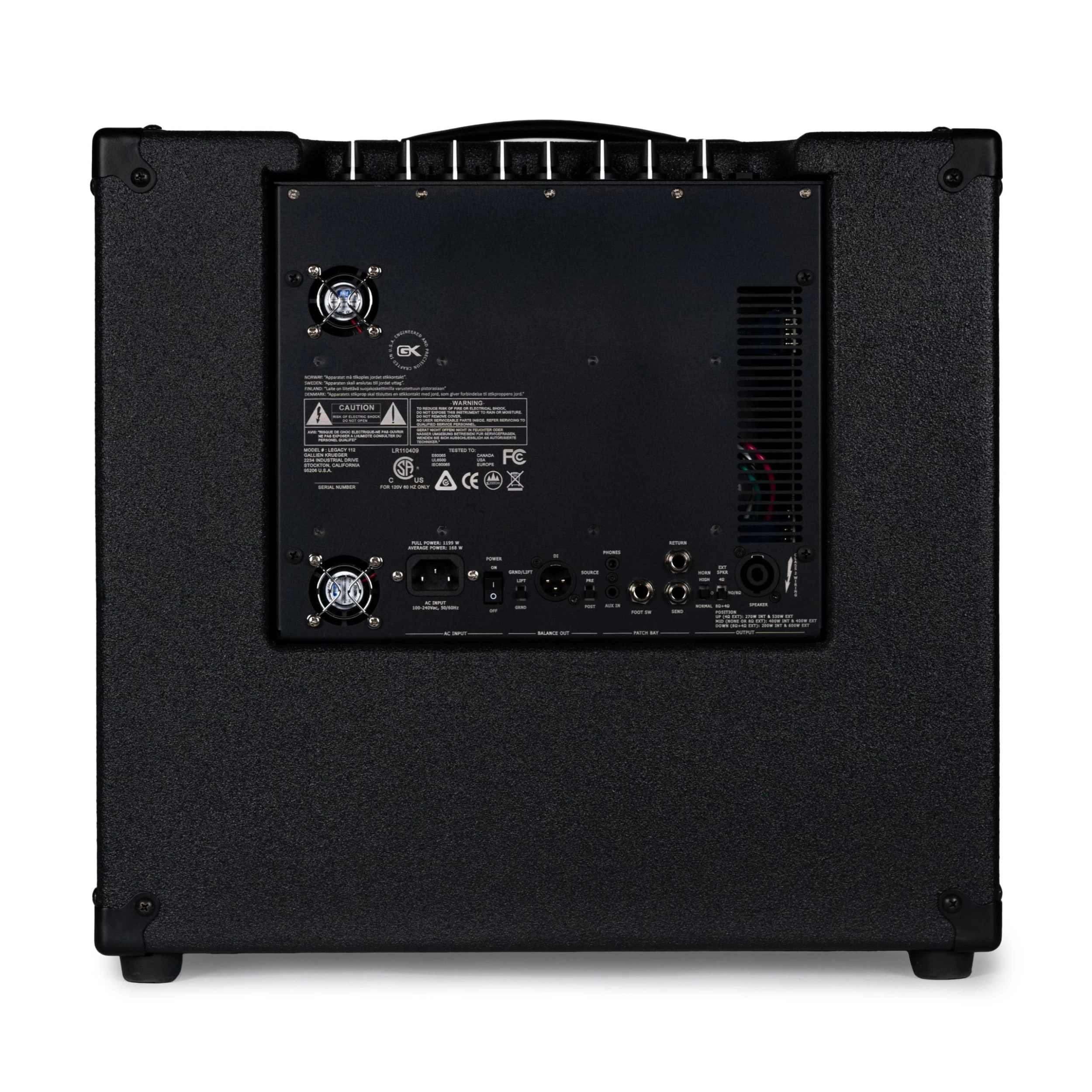 - Modern Power Amp — Legacy combos use the latest available digital power amps with switch-mode supplies. These deliver a punchy, driving sound at a fraction of the weight and power consumption of analogue power systems. They are safe down to 2 Ohms and operate from 100V to 240V mains.