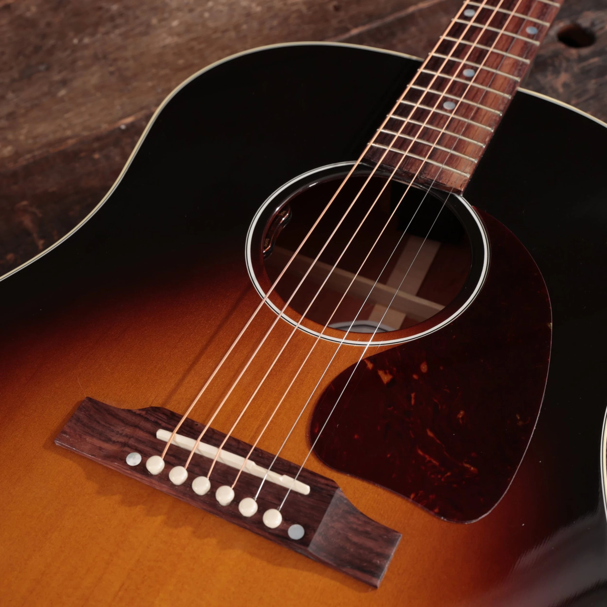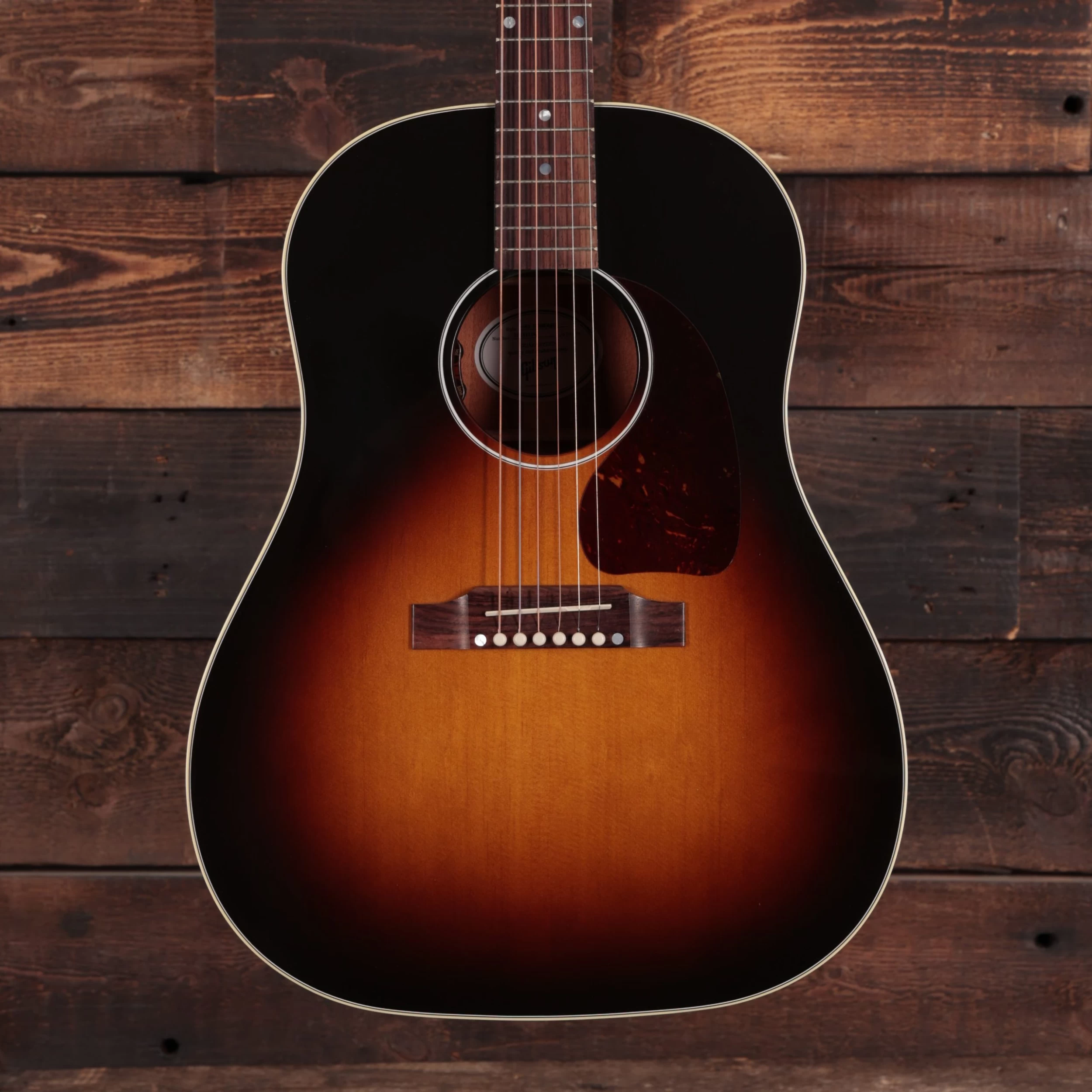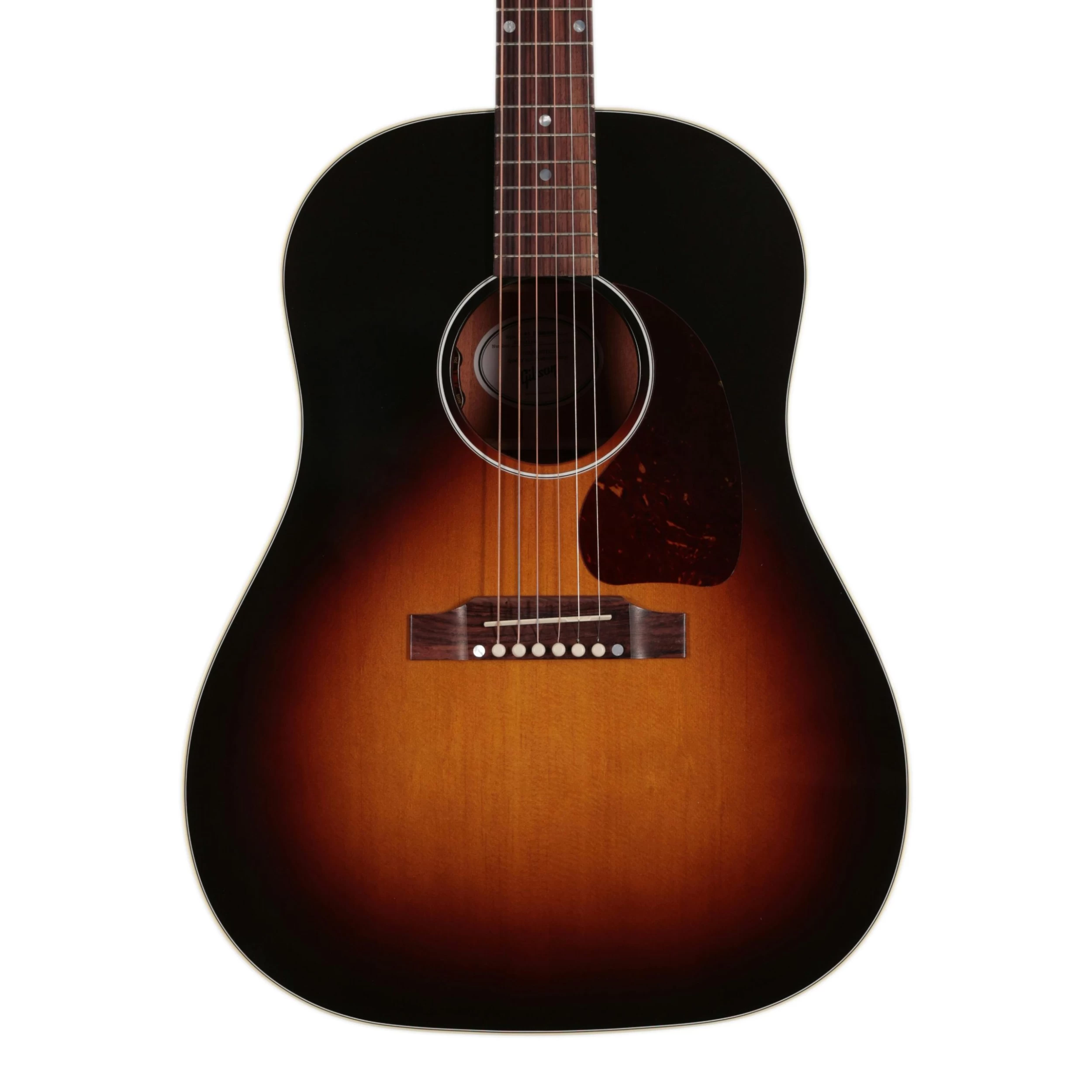 Part of the J-45’s reputation is its iconic appearance; the alluring vintage sunburst finish and ‘tortoise teardrop’ pickguard are picture perfect.