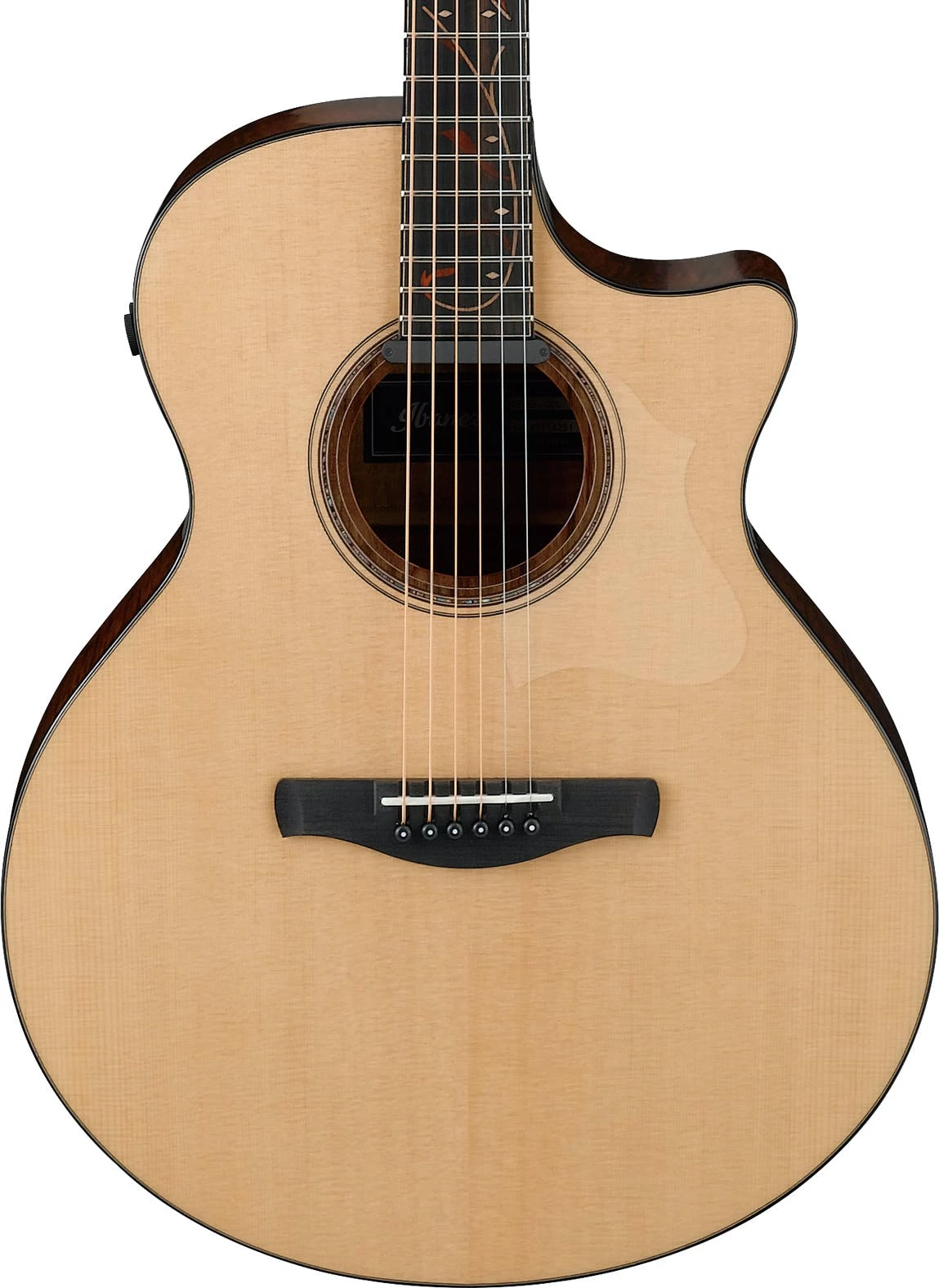 - Soundhole Rosette: Abalone and Wooden Rosette with Soundhole binding