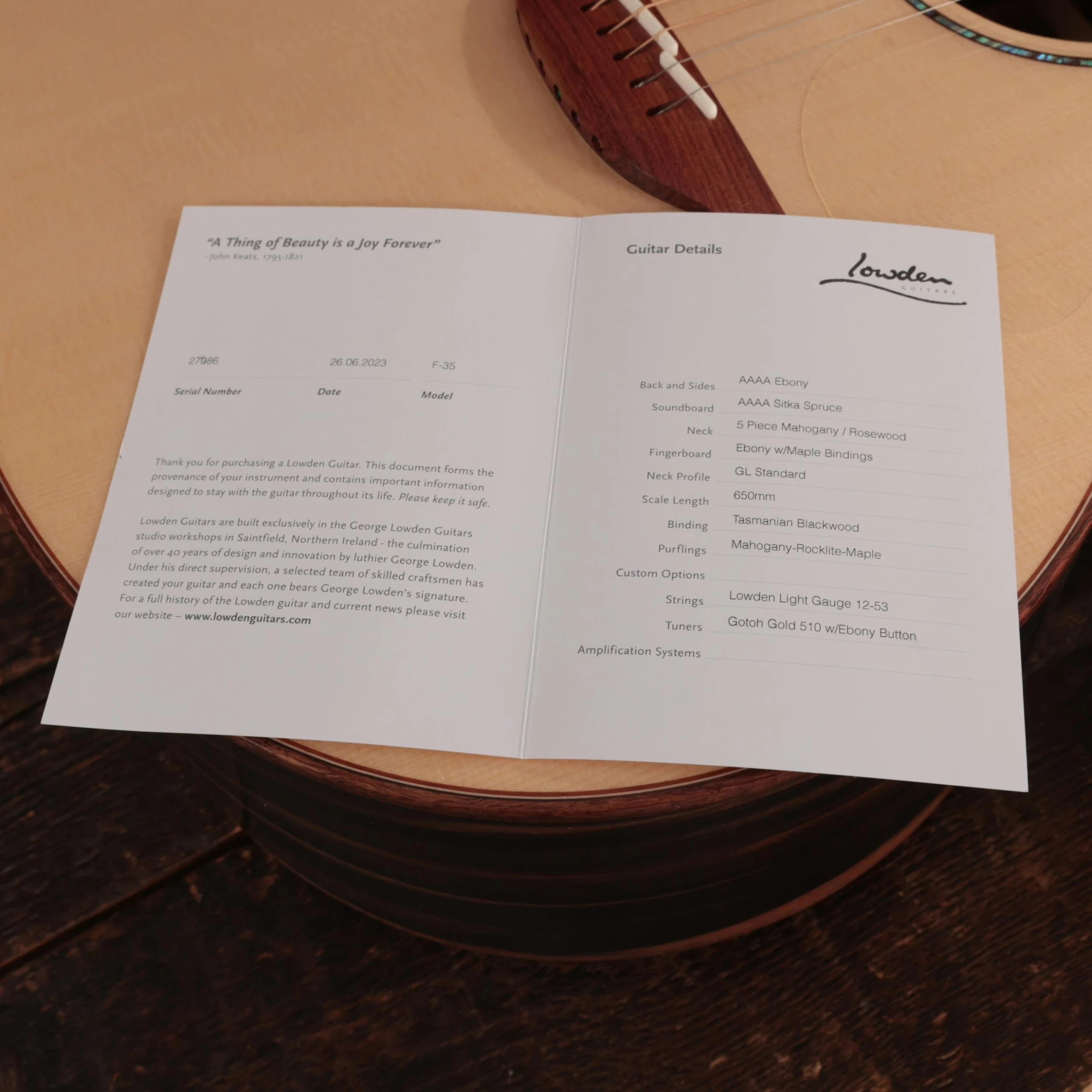 - Strings: Lowden Light Gauge 0.12-0.53