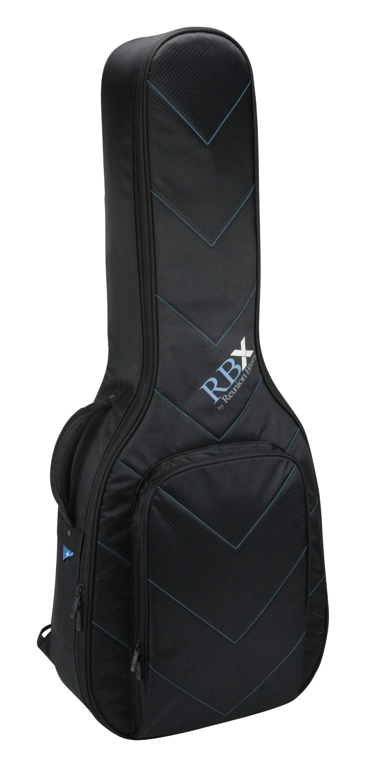 Reunion Blues has been making the world’s best gig bags for almost 40 years, and the new RBX gig bag line represents a fusion of our passion for quality and the desire to make an affordable, lightweight, and protective gig bag perfect for musicians on the go. The essence of this passion is represented in its sleek aesthetic design, from the Quilted Chevron exterior to the padded Blue Luster lining. The RBX protection system features a lightweight multi-layer foam surround with strategically placed impact panels, and a dense foam neck cradle and endpin rest that keep the guitar safe and secure. Padded backpack straps, an integrated subway grip, and Reunion Blues signature Zero G handle make getting around town a breeze. A large but low profile pocket includes a cable loop and organizer and provides ample storage without adding bulk. And best of all, the RBX gig bag features Reunion Blues Limited Lifetime Warranty. The Gig Bag, Reinvented.™
