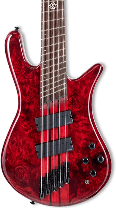 The NS Dimension Series reimagines Spector’s iconic design with multi-scale construction and offers players a new level of playability and tonality. In addition to the multi-scale, neck-thru construction, NS Dimension models also feature a variety of premium tonewoods and cutting-edge Fishman Fluence electronics. The fully curved body is carved from lightweight Swamp Ash and features a highly figured Poplar Burl top. The 5-piece neck is constructed from Maple and Wenge for enhanced stability and eye-catching looks. The 24 fret Wenge fingerboard also features illuminating side dots, allowing players to expertly navigate the fingerboard. New for 2022, the highly sought-after Spector NS Dimension basses are available in two all-new colors, Black & Blue and Inferno Red, each featuring a high gloss finish. Taking inspiration from Spector’s USA Series, the new color options in the NS Dimension Series were carefully chosen to highlight the grain pattern of the highly figured woods, resulting in a striking look that’s always one-of-a-kind.