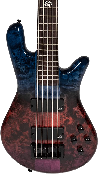 Spector’s NS Ethos range celebrates the brand’s iconic legacy while simultaneously incorporating fresh features that matter to the modern player. The iconic curved body is carved from solid Maple and is adorned with a highly figured Poplar Burl top. The 3-piece Maple neck features a 24 fret Rosewood fingerboard, adorned with a custom Spector logo inlay on the 12th fret. When it comes to electronics, the NS Ethos employs Aguilar’s premium pickups & OBP-2 active pre-amp for a wide range of usable and musical tones. NS Ethos basses are available in two distinct finishes including Interstellar and Super Faded Back. These eye-catching, high gloss finishes are inspired by our USA Series instruments and lend an extra level of sophistication to these instruments.